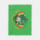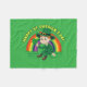 Fleece Blanket med en illustration av en söt leprechaun med en grönt kostym, en top hat och en schamprock löv, med en färgstark regnbåge i bakgrunden och texten "Lycklig St. Patrick's Day" En perfekt som firar Saint patrick's day, ritad av Radka2D