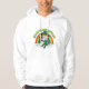 Hoodie med en Illustration av en söt leprechaun som leprechaun bär grönt kostym, top hat och som håller en skamrock löv, med en färgstark regnbåge i bakgrunden och texten "Lycklig St. Patrick's Day" En perfekt som firar Saint patrick's day, ritad av Radka2D