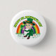 Knapp med en Illustration av en söt leprechaun som bar en grönt kostym, en top hat och som håller ett schamprock löv, med en färgstark regnbåge i bakgrunden och texten "Lycklig St. Patrick's Day" En perfekt som firar Saint patrick's day, ritad av Radka2D