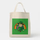 Tote Bag med en Illustration av en söt leprechaun med en grönt kostym, top hat, med en schamprock löv, med en färgstark regnbåge i bakgrunden A perfekt för att fira Saint patrick's day, ritad av Radka2D