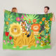 En stor, vänlig och söt tecknad som tar sina vänner för en åktur:) lejona, tiger, leoparder och till och med en leopard från snö njuter av en promenad med sin överdimensionerade kompis :) i en färgstark, fantasmagorisk och törs jag säga psykedelisk djungel. Helt anpassade.