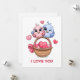 Alla hjärtans kort med ett stort fullt av rosa hjärta i basket. Två fåglar ligger sitta vid basket.