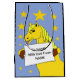 Det går enkelt att redigera malltextmeddelandet "Till XXXX med kärlek från XXXX" om du vill ändra namn eller ändra tecknaden helt och hållet. Pony visas på en blå bakgrund med gultens stjärnor. Kom ihåg att ändra meddelandena på vägens fram- och baksida. Om du vill ha fler artiklar med mina tecknader kan du checka ut min butik!