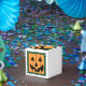 Det här är en behandlingsbox med en jack med kvadratorange o' lantern Halloween pumpkin.