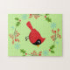 Cute Tecknad Red-kardinal med blommor Pussel
