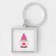 CUTE TECKNAD ROSA GENONE FYRKANTIG SILVERFÄRGAD NYCKELRING