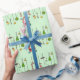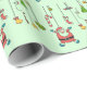 Perfekt att slå in Julklappen! En söt juldesign av tomten, renarna, snögubbe och candy cane som hänger från toppen av julstrummet mot coolans mynta grönt. Den här snyggten, söt, tecknad stil-designen är perfektens för barn och hela familjen. Grattis till jul med ett leende på ansikte!