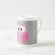 Cute Tecknad Uggla - Rosa och Grått eget namn Benporslin Mugg