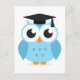 Anpassningsbar studenten vykort med ett sött, blått uggla student med en pyttarhatt. Utformning av ljus och roligt. Andra produkter med denna design finns också tillgängliga. Om du vill ha anpassningsbar eller hjälp med att anpassa kan du använda butikskontaktlänken ovan.