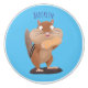 Den hungriga chipmunken i lycklig har en fullt mat. Löjd med en lustig illustration av tecknaden stil.