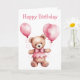 A Teddy Bear celebrating a birthday with balloons. Suitable for a birthday for anyone