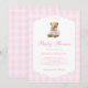Cute Teddy Bear Coquette Bow Pink Girl Baby Shower Inbjudningar