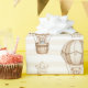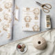 Soft neutral teddy bear pattern wrapping paper with hot air balloons and stars in warm beige tones. Calm, dreamy aesthetic with a gentle nursery feel. Ideal for baby boys, baby girls, new parents, and minimalist nursery lovers.