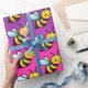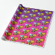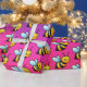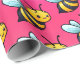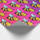 Cute Cartoon yellow bees pattern on neon hot pink purple ombre gradient background Wrapping Paper