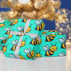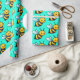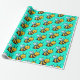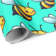 Bina med Tecknad gult mönster på ljusa turkos grönt bakgrund Omslagning Papper