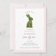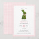 Cute and preppy Hand painted watercolor topiary bunny rabbit with pink bow birthday invitation for girls with pink and white gingham border.