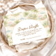 A whimsical watercolor design featuring a playful mix of pastel summer animals surrounded by tropical leaves, seashells, starfish, and soft botanical details. The cheerful palette of peach, mint, coral, and soft blue creates a light storybook atmosphere, while the elegant arch layout keeps the celebration details beautifully framed and easy to read. Perfect for a warm, joyful summer celebration with a charming nursery aesthetic.