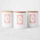 NewParkLane - Tropical jul Cookies Burk-etikett, med en söt flamingo med en julhatt och en varm scarf, med en roligt rosa och en benvit candy cane-strimlad bakgrund. Du kan ändra all stilar, färg och alla storlekar efter behov. Checka ut den här samlingen för matchande artiklar! Har du någon särskild personlig design för önskemål? Kontakta mig gärna!