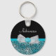 En söt turkotisk blå cheetah-trycknyckelkedja med ett friskt, rent vitt båge förnimmat med söt pärlor och ett rosette-band i mitten. Alla giriga flickor som kärlekar turkos och svart skulle få kärlek att lägga till namn till denna chic och snyggt djurtrycksdesign. Platt utskriven bild, inte egentligt menyfliksområde.