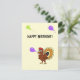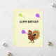 Cute turkey med ballonger på gultens bakgrundsfödelsedagskort