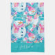 Cute turquoise snowmen script name kökshandduk