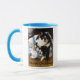 Ett foto av en söt svart och vit tuxedo-katt njuter av deras delvis oinslagna Julklapp. I texten står det: "God jul!" Mönstret trycks på båda sidor om mugg. Tack för att du handlar på CherylsArtPhotos på Zazzle.