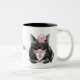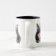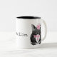Cute ceramic mugg med vattentorg grafik av en svart och vit tuxedo-katt med rosa blomma och med krage som bara kyls. Svart text är kyld och kan vara personlig att läsa vad du vill. För söt presentidé för kattälskare.
