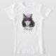 Cute Cute-älskare T-skjortan med vattentäta teckningar av en svart och vit tuxedo-katt, med lavendeljuveler och en lavender-blomma, som kyls ut. Svart text läser Chill och kan vara personlig för att läsa vad du vill.