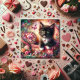 Cute Tuxedo Kitten Flowers Candy Hearts Valentine Julkort