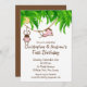 Cute Twin Jungle Monkey Födelsedagsfest inbjudan