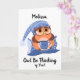 Uggla mår inte bra så han ligger i sängen med en mysigt hatt och kopp te. Du kan anpassa all fält-text, men mottagarens namn plus frasen "Uggla Be Thinking of You!" står på framsidan. Frasen "Kom snart" står på insidan.