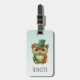 Ett bagagemärke med en underbar vismisk illustration. En stor ögonbrunt uggla som bär en finare grönt top hat och bukslips.