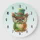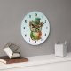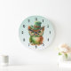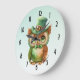 En klocka med en underbar vismisk illustration. En stor ögonbrunt uggla som bär en finare grönt top hat och bukslips.