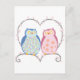 Cute Uggla i Kärlek Heart Rosa Blue Clipart Vykort
