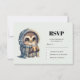 OSA kort med en söt illustration av ett sött uggla på en vinterrobe och en scarf med en hett kaffe.