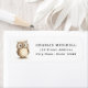 Returetiketter med en vattenfärgsmålning av lite kloka uggla-glasögon.