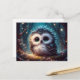 Ett sött uggla med stora, vidöppna ögon-platser på träd gren i skogen, som märkligt nog ser ut i omgivningarna. Himmel är tydligt och kastar ett milt ljus genom löven, skapar uggla fjädrarna att se mjuka och flytande ut. Denna lilla varelse framstår som både nyfiken och varsam, och tillför stollig en aning till den fredliga skogsscenen.