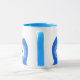 Roligt keramisk mugg med grafik från tecknad stil i ett uggla huvud gjort i blått med en färgfull paisley mönster runt det är öga. Den blå texten längst fram i mugg läser Whos Mugg och kan vara personlig att läsa vad du vill. Cute-presentidé.