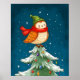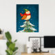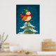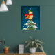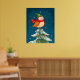 Den lilla jultomten uggla på ett snövilt Julgran poster konstdesignen på tryckväggen.