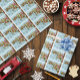 En grupp små söta baby-vajar som hänger ihop på träd grenar. Snö och stort snöflingor faller över hela uggla.