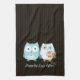 Den här söta ugglor kökshandduken ger en roligt till bröllop, möhippor och årsdagar. Nervous uggla groom med bog och brud med slöja. Texten kan vara personlig med namnen på bruden och brudgummen. En roligt husuppvärmningspregift för nyfödda.