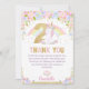 Cute Unicorn 2:a födelsedag Regnbåge Blommigt Tack Kort