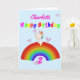 Det här är ett sött enhörnfödelsekort. Det här färgstarka andra födelsedagskortet har en vit encorn sitta på en regnbåge omgiven av hjärtan och färgstark text. En söt design för en tjej som blir två år gammal. Det här kortet kan vara personlig genom att lägga till barnets namn på kortets framsida för att göra extra speciellt för en liten flicka. Budskapet därinne är "Till Charlotte, som önskar er en underbar andra födelsedag, massor av kärlek Nana och farfar" kan ändras efter behov.