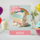 Ett sött födelsedagskort med en illustration av en enmajstårta med regnbåge färg på framsidan med "Grattis på födelsedagen" i ett vitt, fetstilt typsnitt med versaler. Anpassa fronten genom att lägga till ditt/dina namn. Insidan av kortet har plats för det skrivna eller handskrivna meddelandet.