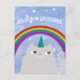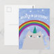 Cute, tecknad, lustigt dodle-unicorn och regnbåge-vykort, med vattenfärgen blå himmel fullt av stjärnor och anpassningsbar-citat. Perfektens val för flickans födelsedag.