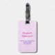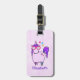 En bagagetapp med en vit teckning i en coola och funky rosa-kubik som har en lila mane och berättelse. Den här söta varelsen bär hjärtformade solglasögon och dekoreras med små stjärnor. Rosa vattenfärgsbakgrund.