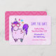 Spara datumkortet med en vit teckning av en coola och funky rosa encorn som har en lila mane och saga. Den här söta varelsen bär hjärtformade solglasögon och dekoreras med små stjärnor och ett hjärta.