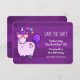 Spara datumkortet med en vit teckning av en coola och funky rosa encorn som har en lila mane och saga. Den här söta varelsen bär hjärtformade solglasögon och dekoreras med små stjärnor och ett hjärta. Lila strimlad bakgrund.