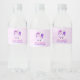 Etiketter för party/händelse flaska med en vit teckning av en coola och funky rosa-kubik som har en lila mane och svan. Den här söta varelsen bär hjärtformade solglasögon och dekoreras med små stjärnor. Rosa vattenfärgsbakgrund.