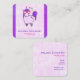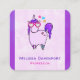 Kvadra affärskort med ett viskigt teckning av en coola och funky rosa encorn som har en lila mane och saga. Den här söta varelsen bär hjärtformade solglasögon och dekoreras med små stjärnor. Rosa vattenfärgsbakgrund med ljusa lila gräns på den lämnat sidan och på högerna.